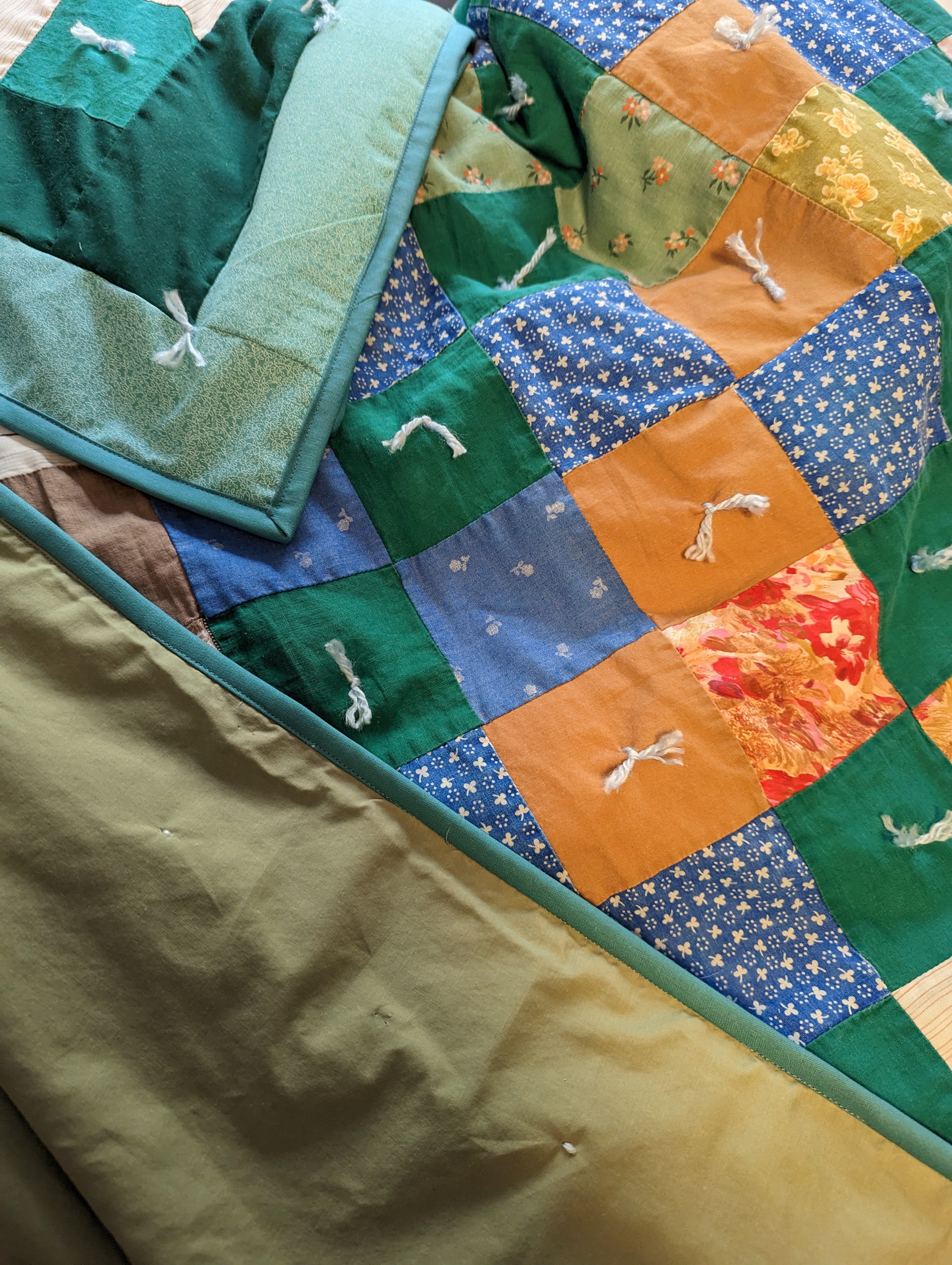 Patched, re-tied, new batting, new binding