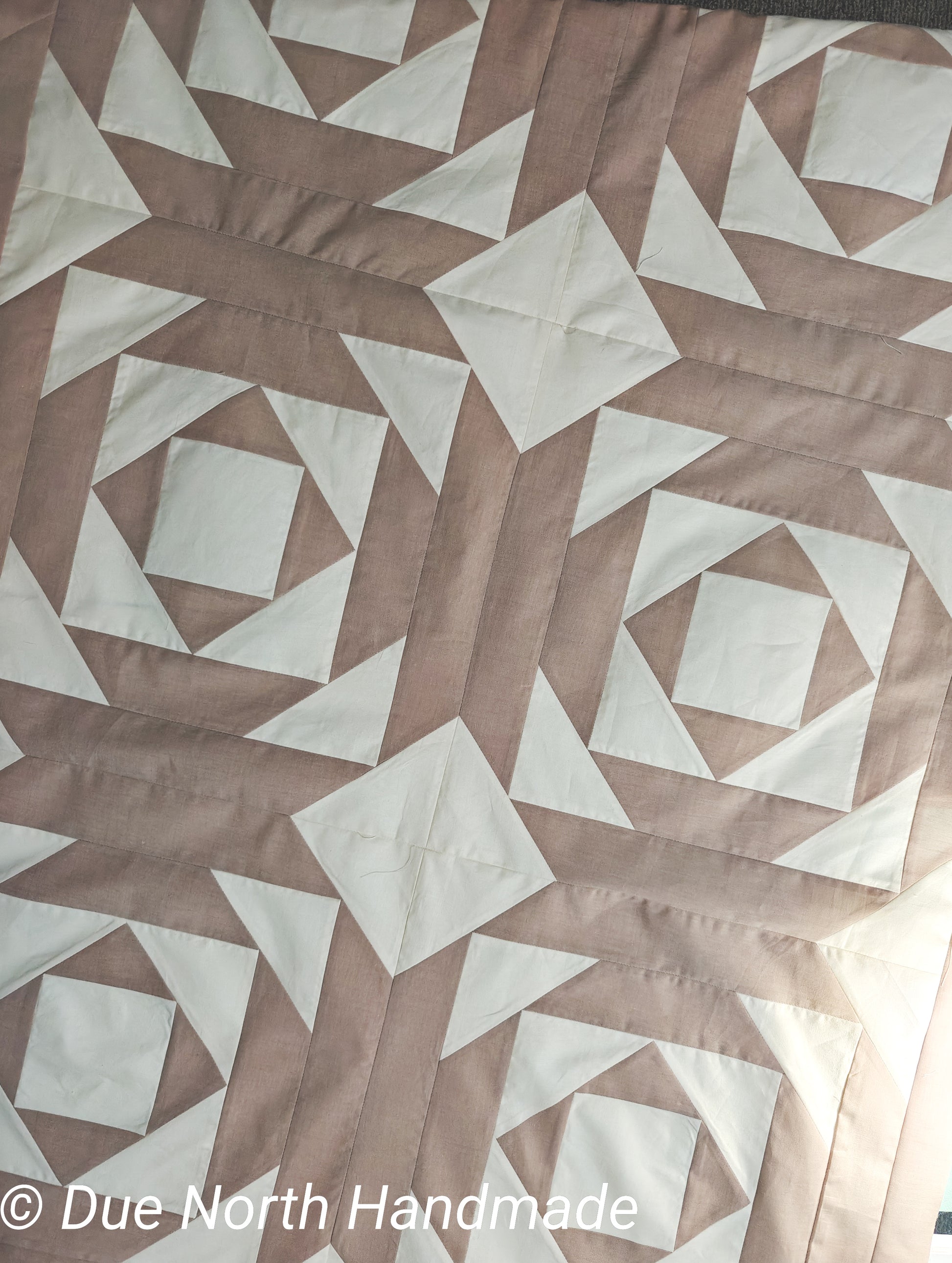The Loony quilt pattern is a block based design written with three sizes - a baby size finishing at 43"x59", a throw size finishing at 59"x75", and a bed size finishing at 91"x91". Fabric requirements are included for three different colorways - two color, color block, and fat quarter.