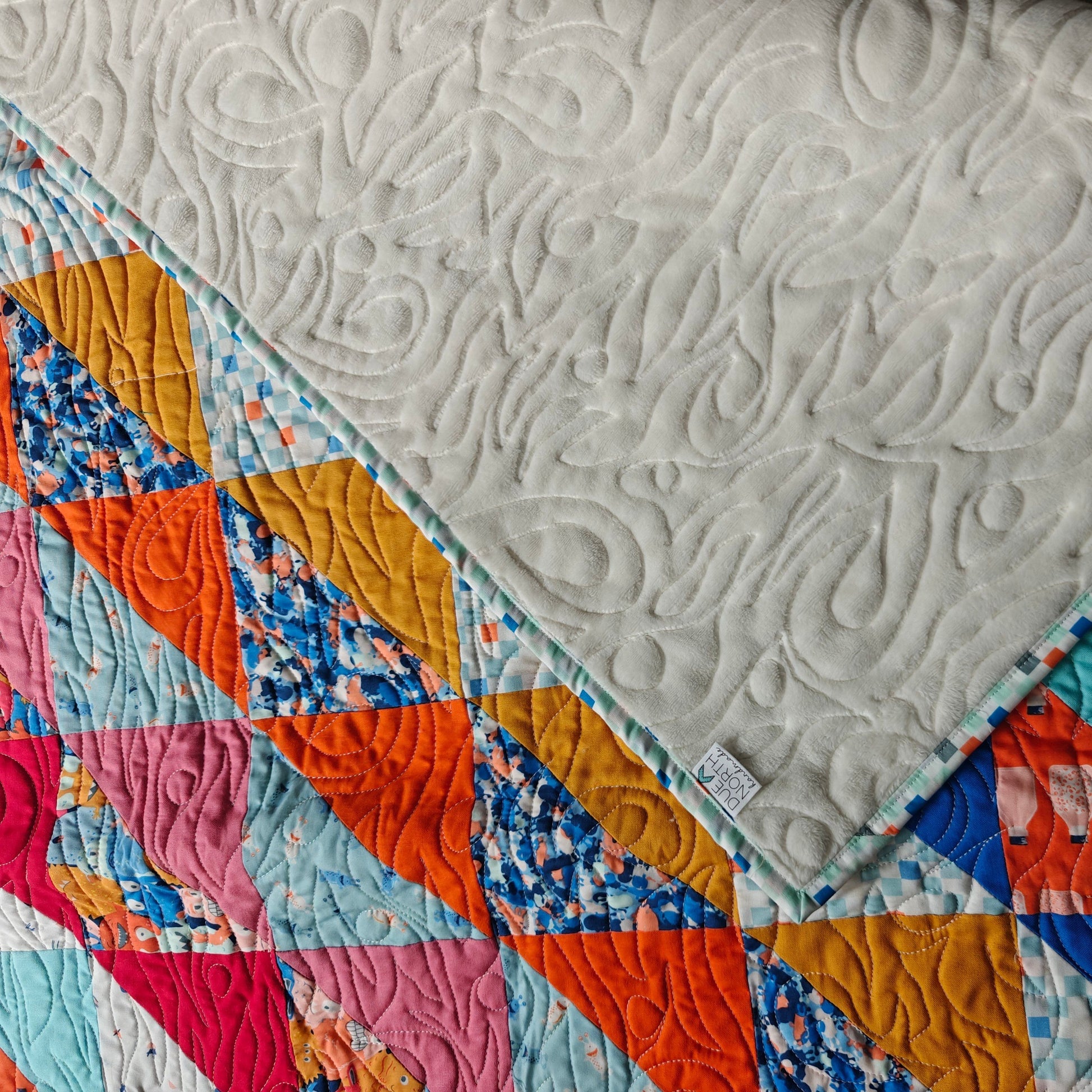 Introducing the perfect snuggly companion for your little one: Monsters HST Quilt! Vibrant colors and playful monster prints are sure to delight, while the soft minky backing provides ultimate comfort. Say goodbye to boring baby quilts and hello to a unique and fun addition to your nursery.