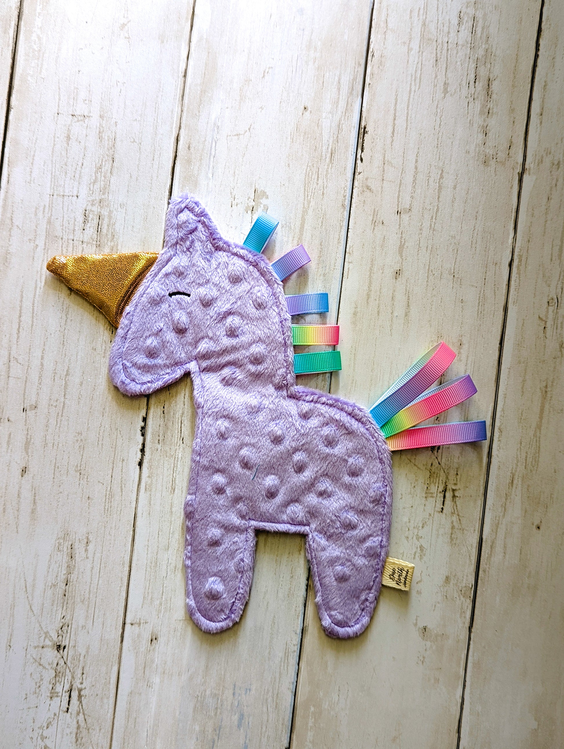 My best selling crinkle toys are now available for you to make at home! This pattern for the Sleepy Unicorn includes the supply list and instructions to make your own Unicorn, to keep or gift as you see fit.