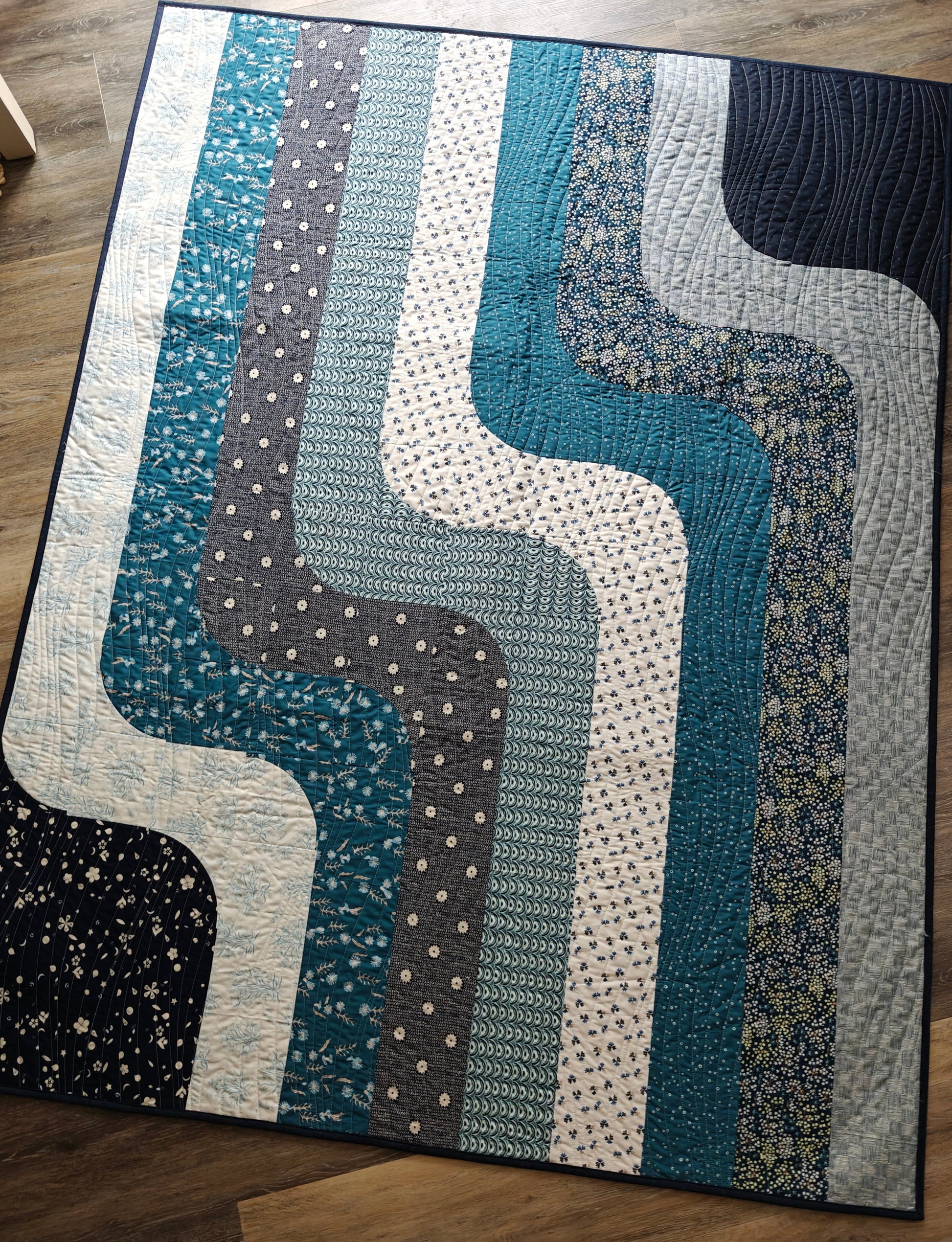 Made with shades of blue and quilted with a modern gentle wave design, this quilt adds a contemporary touch to your home.